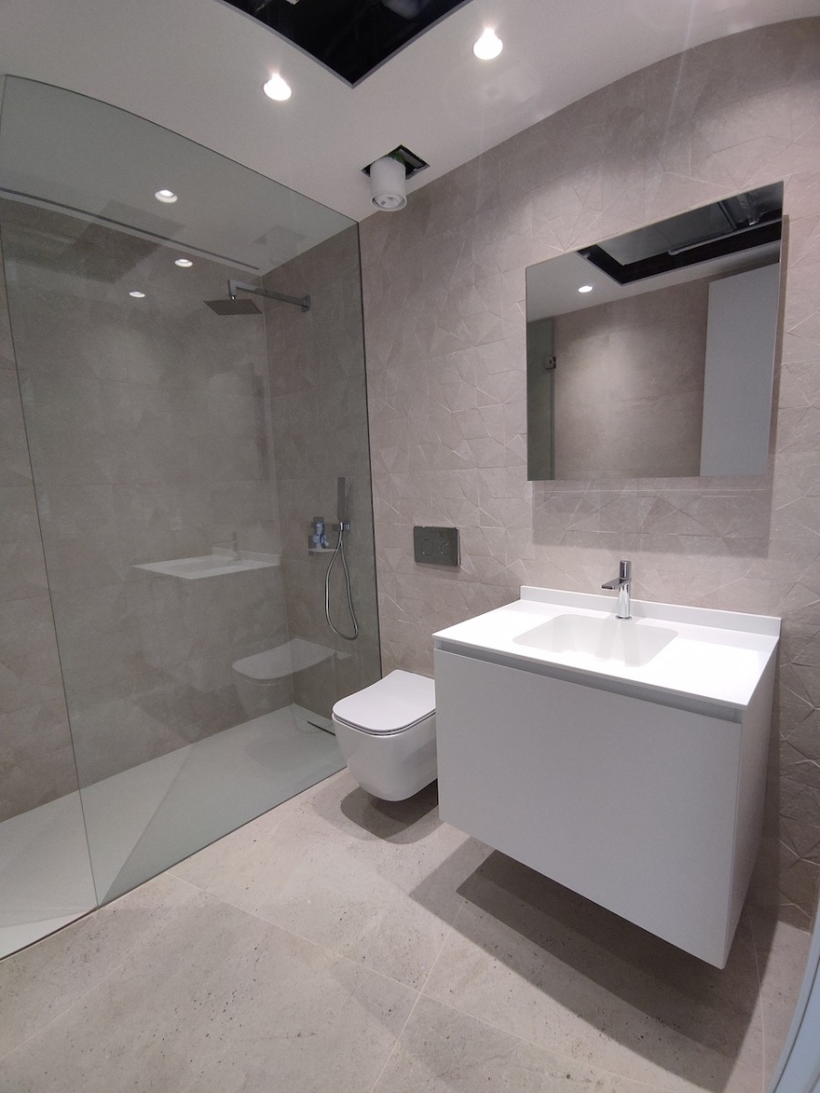 The main level offers a spacious open-plan living and dining area with a fully equipped modern kitchen, all opening onto a terrace. There are over 300 m² of terraces on all floors both covered and open, ideal for dining, lounging, and relaxing outdoors. The villa includes four bedrooms, all with en-suite bathrooms and three with walk-in closets. On the main floor, you’ll also find one bedroom suite, two guest toilets (one with access from the terrace), and a laundry room on the service floor for added convenience.