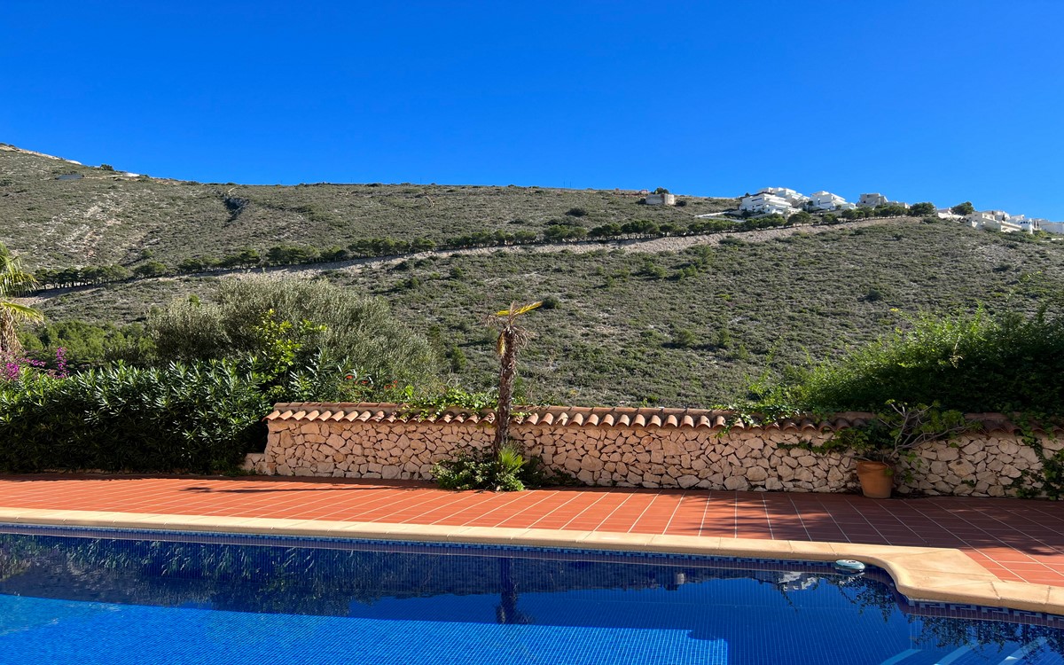 Finished modern villa located on a 817 m² corner plot in Moraira, Benimeit.The property consists of 2 floors and two under builds, one of 103 m², which could be converted either into a gym, cinema or games room and one of 200m2 which could be converted in an additional full living area. The ground floor consists of 2 bedrooms sharing a bathroom, open plan living/dining area with a fully fitted kitchen and a guest toilet. From this floor you also have flat access to the pool with a spacious sun terrace. On the first floor you find the master bedroom with an en-suite bathroom, a walk-in closet and access to a large private terrace with amazing SEA views. Additional features are: electric gate, ample off road parking, easy to maintain garden, natural stone walls surrounding the plot and 10.000l water deposit. For more information please and plans please contact our office in the centre of Moraira.