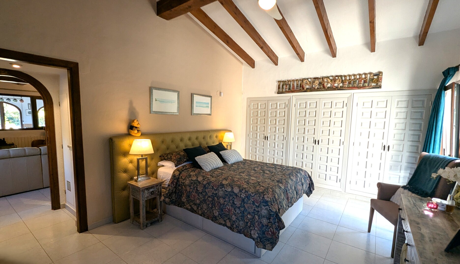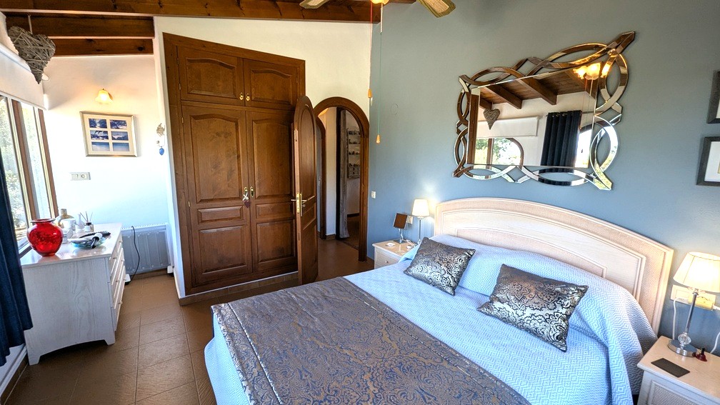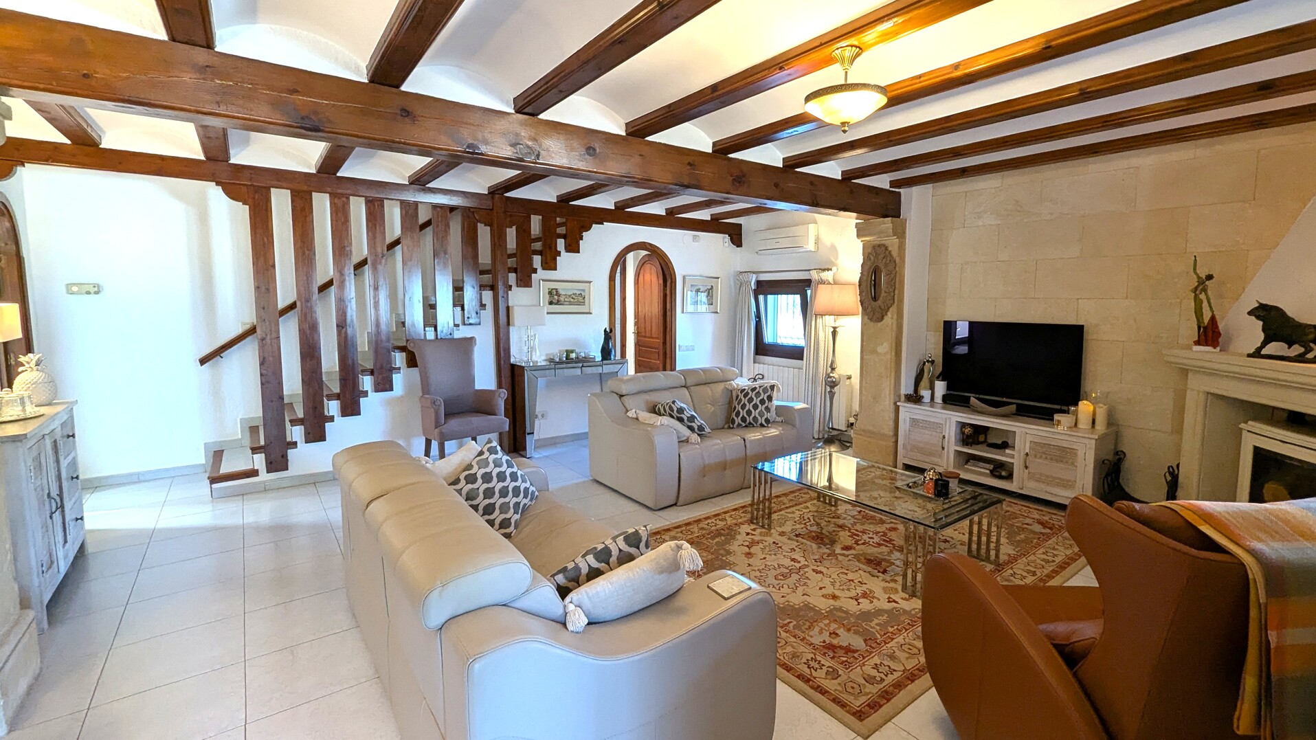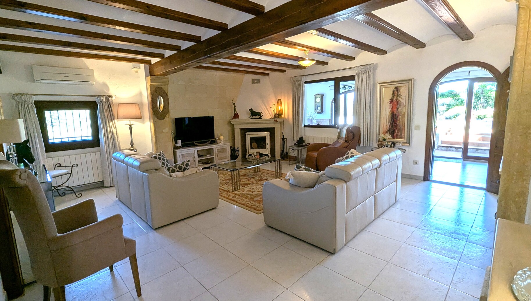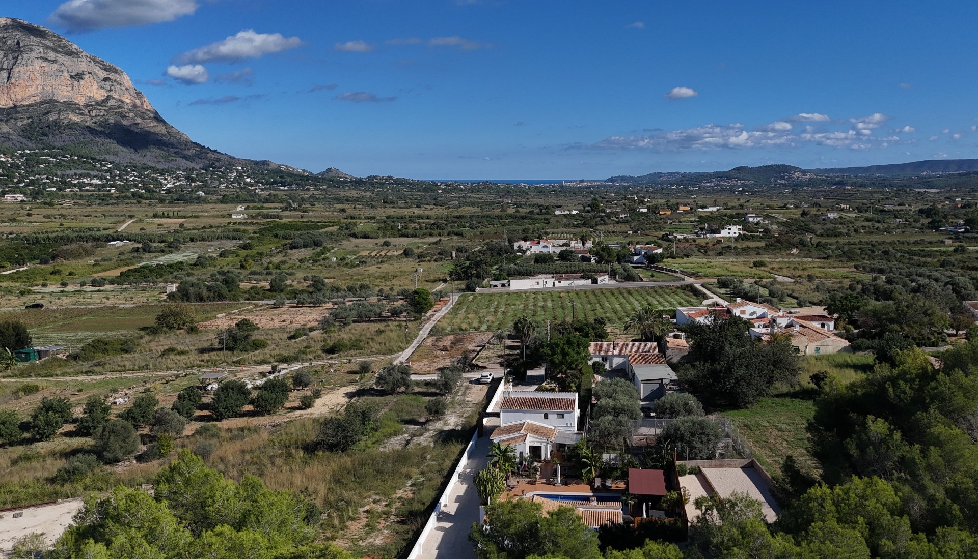 New to the market – A stunning 3 bedroom villa for sale, near Jesus Pobre, Gata de Gorgos, Javea and Denia. If you want to buy a home that immediately makes you feel relaxed and inspired, this charming 3 bedroom finca is what you are looking for. Situated a short walk from the quaint Spanish village of Jesus Pobre and just a 15-minute drive from Javea’s beautiful beaches, this reformed finca offers complete tranquillity coupled with modern convenience. The finca is accessed via a quiet lane through to a long private drive, and sits centrally in the generous 2426 m2 flat plot. As it nestles beside the Montgo natural park, it enjoys stunning Montgo and countryside vistas and even a glimpse of the sea at Javea. The house is east/west facing and enjoys the sun all day long. Its current owners have lovingly refurbished the house over the past few years, and have created an amazing, multi-faceted property. There is nowhere within this property that you cannot enjoy peace, privacy and tranquillity. Entry to the property is via a long private driveway with ample parking for several vehicles to the front naya. This is fully glazed and offers stunning Montgo views. From here you enter the large living/dining room with beamed ceilings, Tosca fascias and a wood burner. The separate, fully fitted modern kitchen and the master suite is off this. The master bedroom, with fitted wardrobes, has patio doors to the garden terrace and a large en-suite shower room. Stairs lead from the living area to the first-floor landing which is very spacious with space for an office area or additional sleeping. From here, a family bathroom is shared by 2 double bedrooms which both look over to the Montgo. Downstairs, the kitchen gives access to a fully walled garden terrace which is like a secret garden, generously populated with an abundance of Mediterranean and tropical plants, shrubs and trees and offering many different seating areas, a beautiful, recently refurbished 10 x 5m swimming pool, a summer kitchen and dining area and an outside utility room/bathroom. There is even a comfortable and spacious kennel for your furry friends. This area offers complete and utter privacy and tranquillity and is possibly the main selling point of the property – simply unique. Also outside, there is a large garage, car port, pétanque pitch and orchard with pedestrian access to the countryside and forestry which has a lovely nature walk to the nearby village of Jesus Pobre. The property enjoys traditional features and facilities including Tosca walls, beamed ceilings, wood burner, gas central heating with radiators, fibre internet, security cameras, double glazing, septic tank, mains water and mains electric. Do you love sports, golf, horse-riding, countryside walks? All of these are on your doorstep – just minutes’ walk or drive away. Prefer shopping, spa breaks, the hustle and bustle of vibrant cities? All within easy commutable distance. It is very rare that a property of this charm, character and distinction comes onto the market so please contact us for further information or to arrange a viewing.