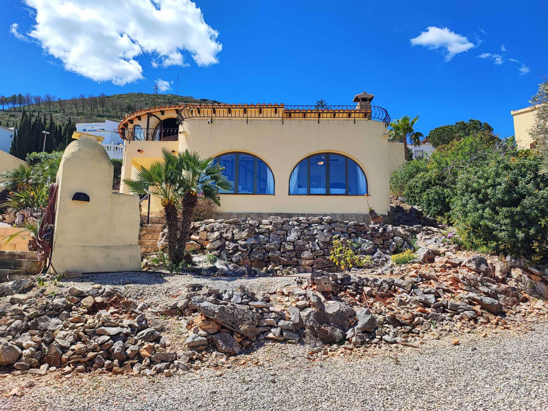 This stunning property, located in Cumbre del Sol boasts breathtaking panoramic views of the sea and bay. Upon entering, you are immediately greeted by abundant natural light, thanks to its ideal orientation. On the main level, you’ll find three bedrooms, including a master suite with en-suite bathroom, as well as a spacious family bathroom. The glazed naya, featuring striking wooden beams and high ceilings, creates a warm and inviting atmosphere—perfect for relaxing or entertaining. A staircase leads to the lower level, which offers another beautiful glazed naya with direct access to the garden and pool area, along with spectacular views of the surrounding landscape. This level also includes a large open-plan living area and a fully equipped kitchen, providing a versatile space for modern living. Full of character and charm, the property offers excellent potential for renovation, allowing you to personalize it to your own taste. The terraced garden, designed across multiple levels, features mature shrubs and natural stone elements, enhancing the property’s authentic Mediterranean charm. Full of character, this property is perfect for a renovation project. Contact us now for more information!