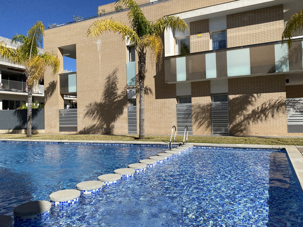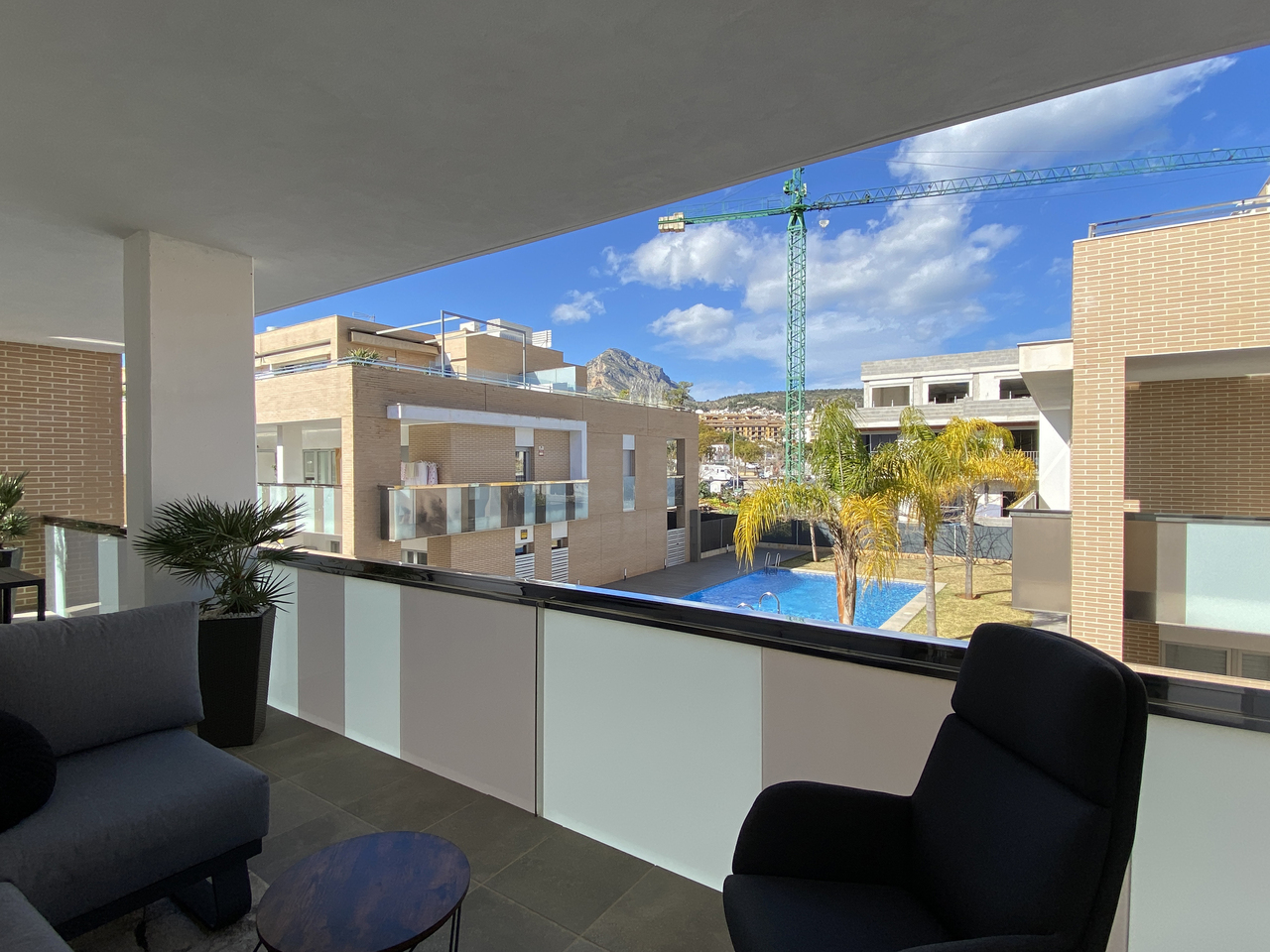 The outside terrace overlooks the communal swimming pool, reserved exclusively for residents. It’s the perfect place to unwind after a relaxing day at Arenal Beach or an active hike or bike ride in the beautiful Montgó natural surroundings.