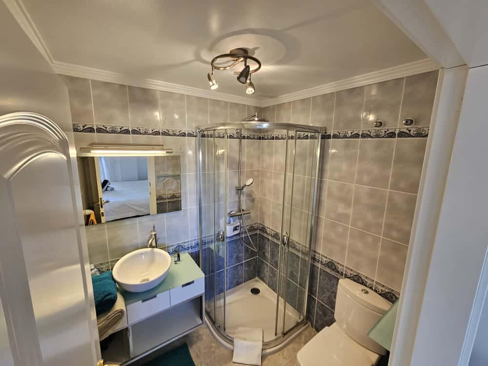 Both levels open onto their own terraces, ideal for sunlit breakfasts, relaxed afternoons, and evening dining with the sea as your backdrop. Residents enjoy a large communal swimming pool and landscaped garden areas, creating a boutique-resort feel in a tranquil environment. A standout benefit is the underground garage with direct street access, providing two private parking spaces, plus convenient visitor parking for friends and family.