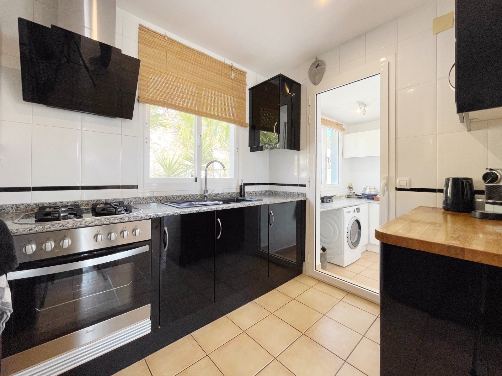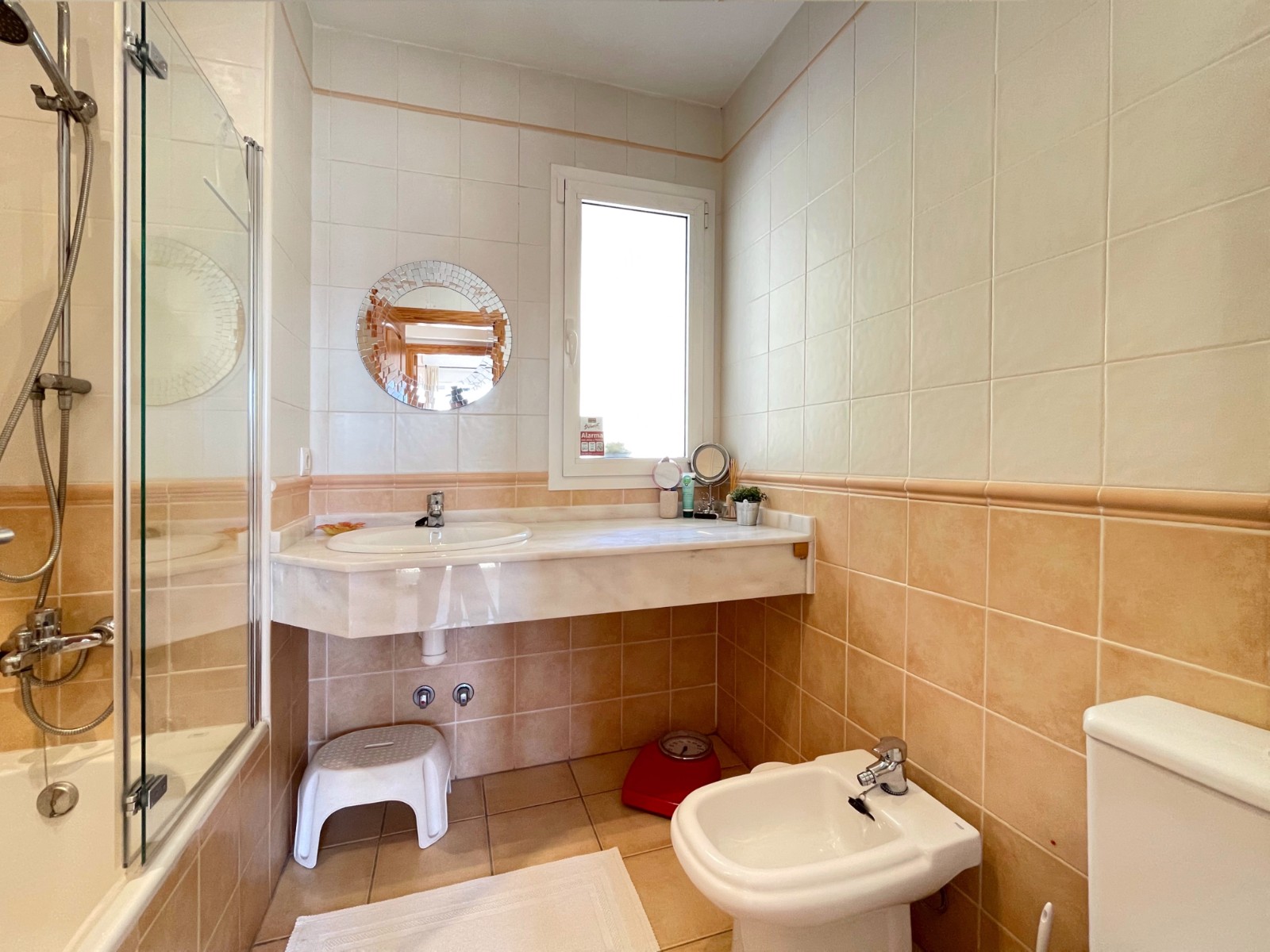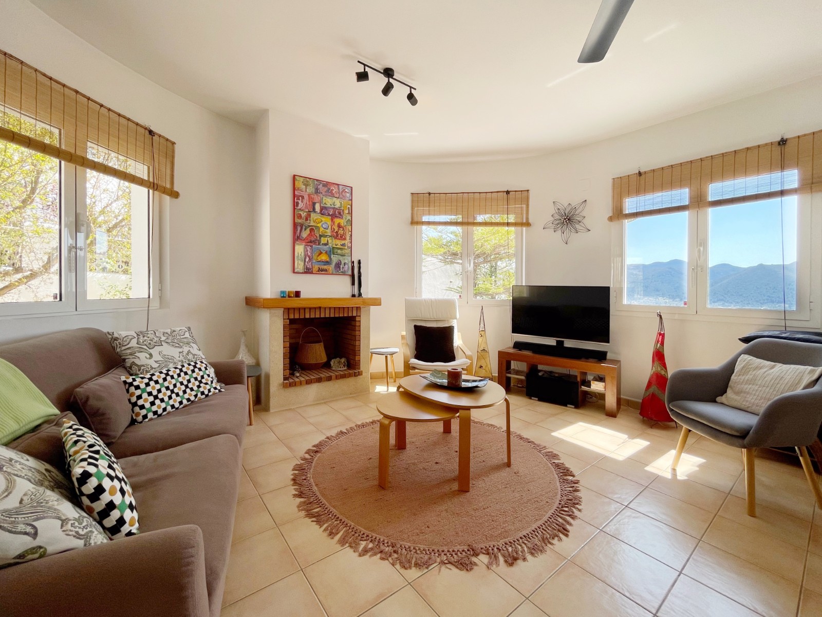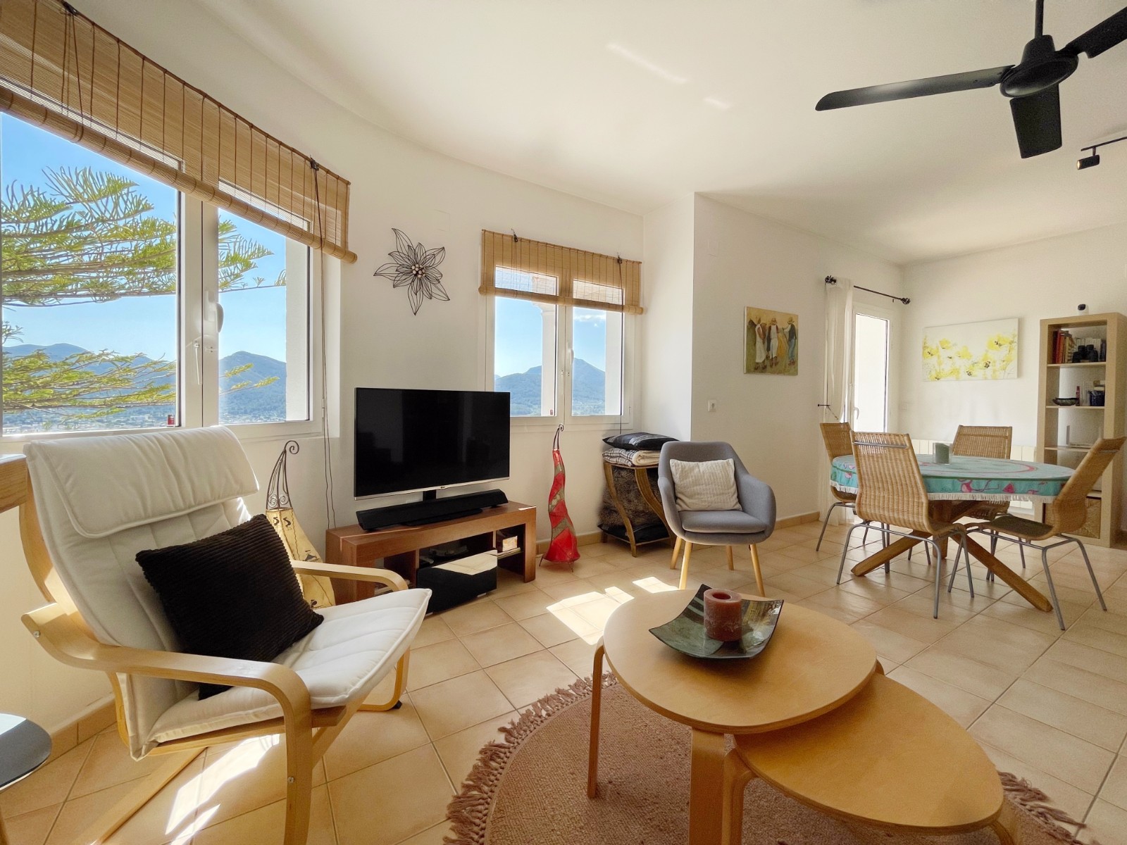 Vanaf de straat biedt een poort toegang tot een afsluitbare privé parkeerplaats op eigen terrein en een separate voetgangerspoort leidt via de voortuin direct naar woongedeelte van de woning dat zich volledig op één niveau bevindt. Via de hal betreedt u de lichte woon-/eetkamer met volledig ingerichte open keuken, die verbonden is met een gesloten bijkeuken waar we o.a. ook de wasmachine. Verder vinden we op dit niveau ook een hoofd slaapkamer met een en-suite badkamer, 2 slaapkamers en een separate badkamer. Eén van deze slaapkamers is momenteel in gebruik als kantoor. Alle slaapkamers zijn voorzien van inbouwkasten, rolluiken, plafondventilatoren en horren. De woonkamer is direct verbonden met het zuid georiënteerde en gedeeltelijk overdekte terras, tevens voorzien van zonwering, vanwaar het weidse uitzicht over het dorp en de vallei. Vanaf het terras bereiken we met een trap het lager gelegen ruime zwembadterras met het verwarmde 8 x 4 M. zwembad, een buitenkeuken, buitendouche, veel privacy en diverse zitjes. Ook betreden we via dit terras de onder verdieping met een ruim gastenverblijf, bestaande uit een woonkamer met open keuken, een slaapkamer met een aansluitende kleedkamer en een separate badkamer. Ook vinden we hier nog een ruime bergruimte. De volwassen, onderhoudsarme tuin is voorzien van sfeervolle verlichting.